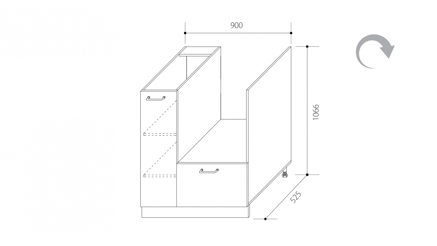 ВхШхГ: 1066х900х525 мм.