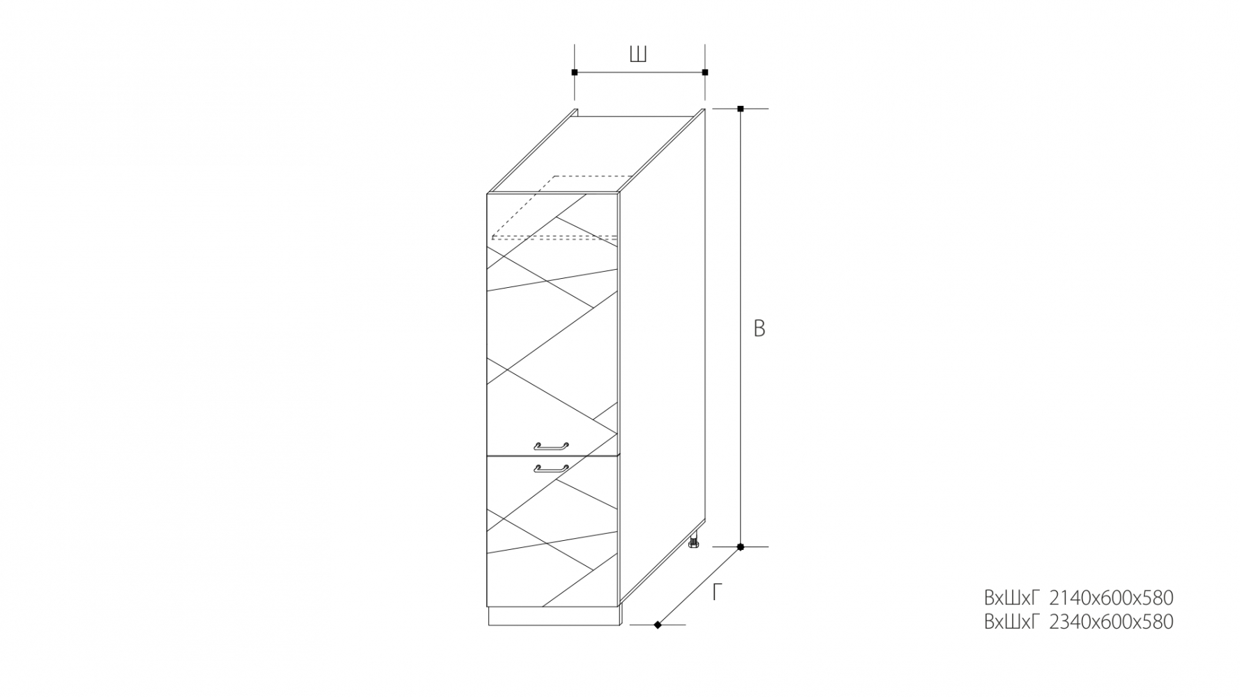 ВхШхГ: 2340х600х580 мм.